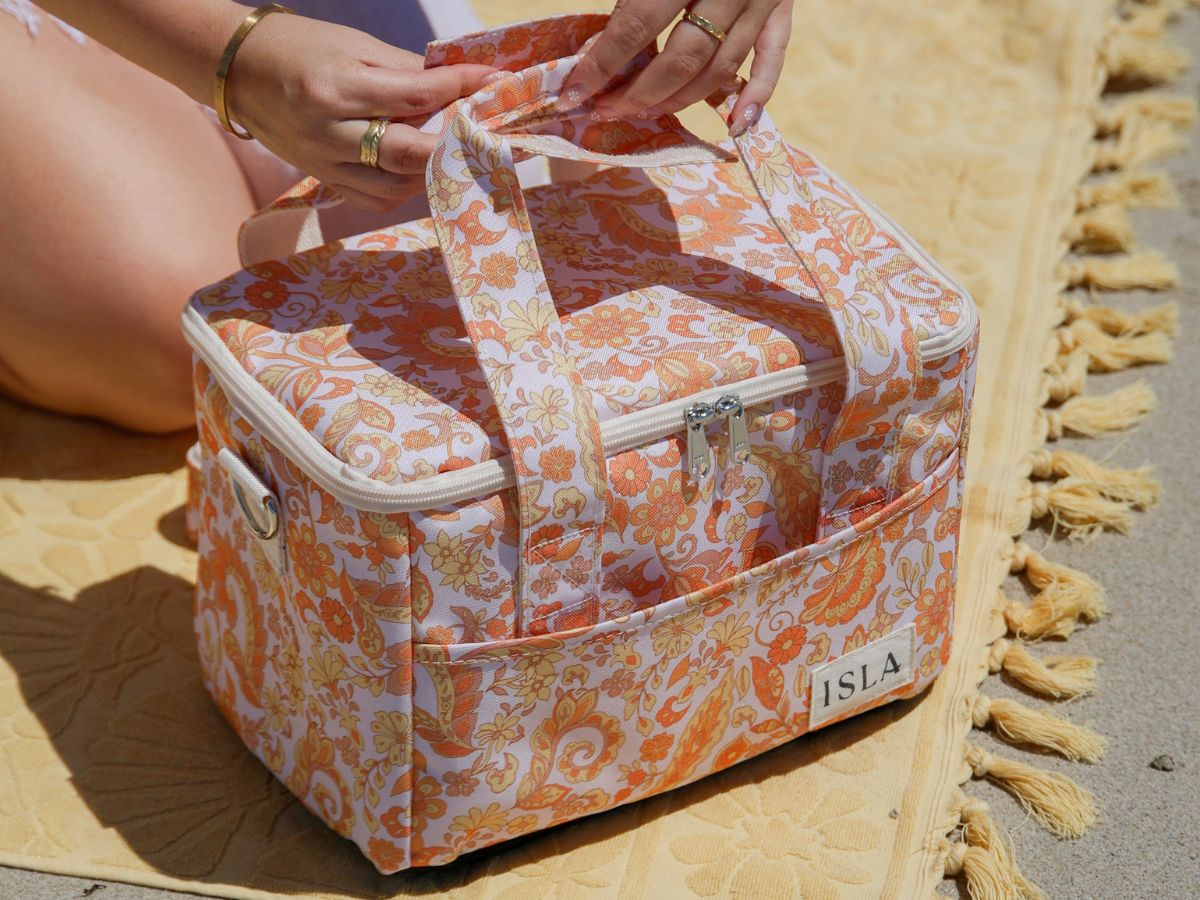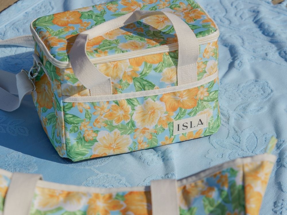 Keep your drinks and snacks fresh with an thermal cooler bag that’s as chic as it is practical. ISLA’s cooler bags feature premium insulation to keep contents cold for hours, ensuring that your refreshments stay perfectly chilled under the summer sun. The wipeable, water-resistant lining makes cleaning up spills effortless, while the structured design ensures everything stays neatly organised. Available in our signature prints, making them the perfect addition to any picnic or beach day.
