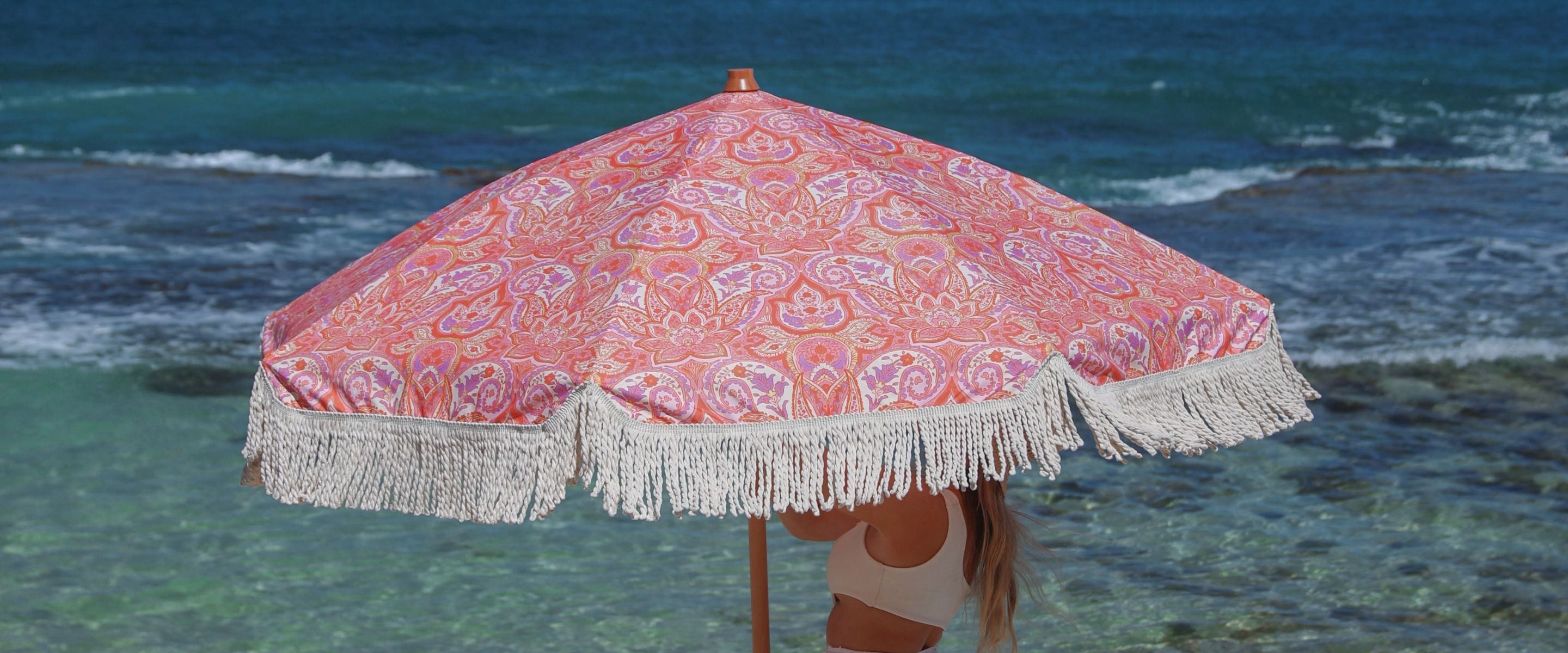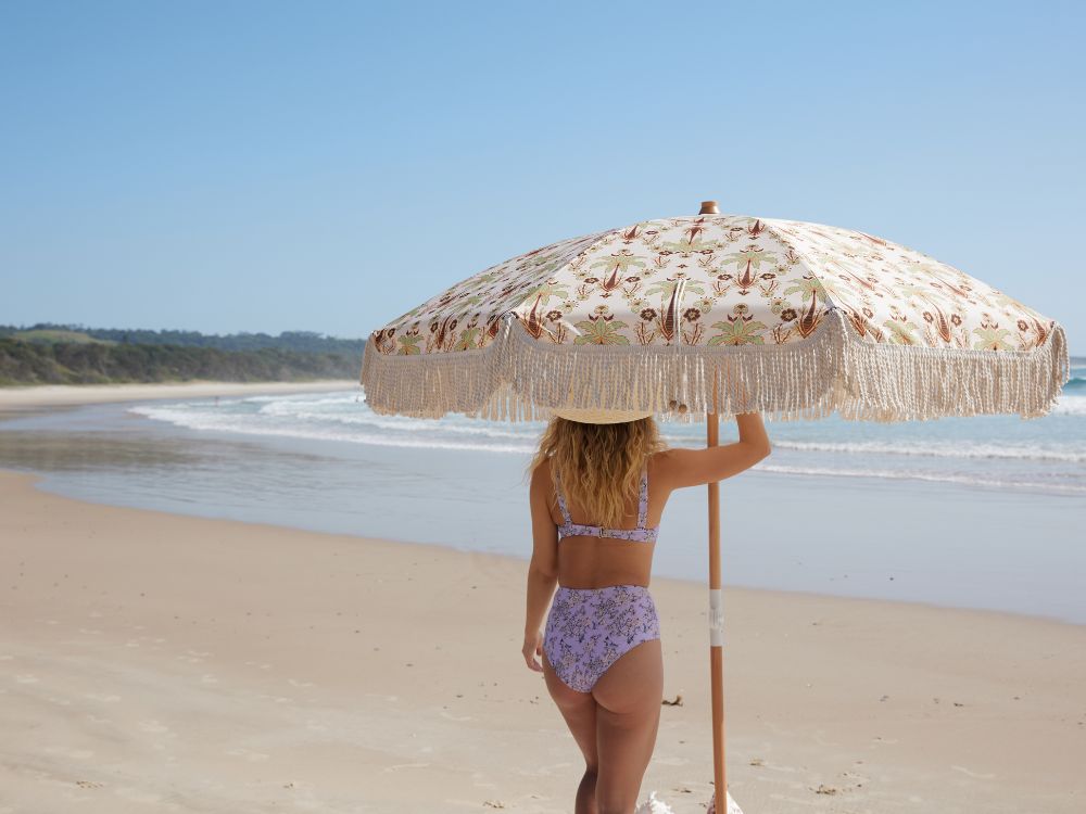 A well-designed beach umbrella isn’t just about shade - it’s about creating your own elegant retreat by the ocean. ISLA’s premium beach umbrellas are crafted with UPF50+ fabric to provide superior sun protection, while our vibrant bohemian and floral prints make a statement on the sand. Featuring a sturdy beech wooden pole, 100% cotton tassels for that vintage look, and an easy-to-carry matching carry bag, our umbrellas combine function and seaside elegance. Designed for effortless setup and durability they’ll accompany you through countless summers.