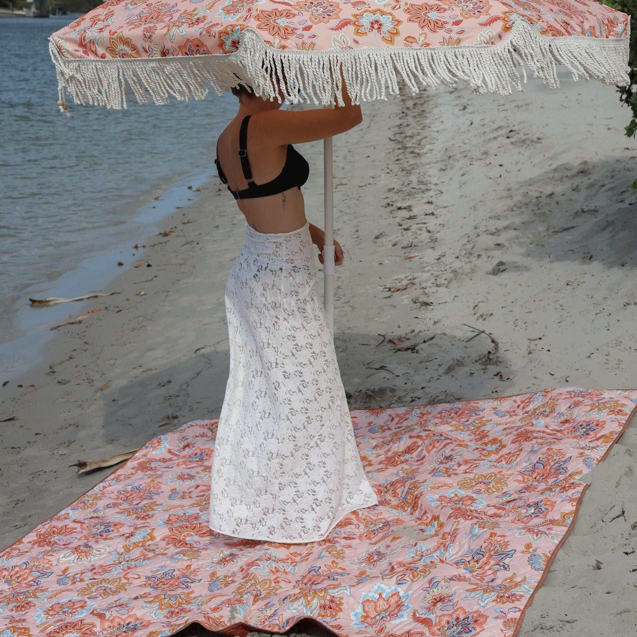 - Seek sun protection and pair with a matching beach umbrella